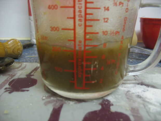 Puede utilizar el líquido de la verdura o agua fresca. Usé el agua de verduras. Usted necesitará por lo menos 200ml darle el relleno una capa fina. Sin embargo, se puede utilizar tanto como usted desea. El agente gelificante deba hervirse luego enfriar en la salsa. El agente gelificante usé hizo. Añadir a esta agua, agente gelificante, los gránulos de la salsa y la pastilla de caldo. Calentar la mezcla en una sartén para que se filtre a través del relleno y no forma un exceso de sólidos en la parte superior del pastel. NO añadir el caldo todavía
