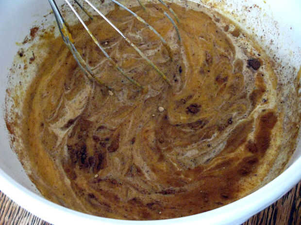puré de calabaza fresca 2 tazas OR 1 lata de 15 onzas pure de calabaza (calabaza fresca sería mi método preferido, pero ' tis no la temporada)