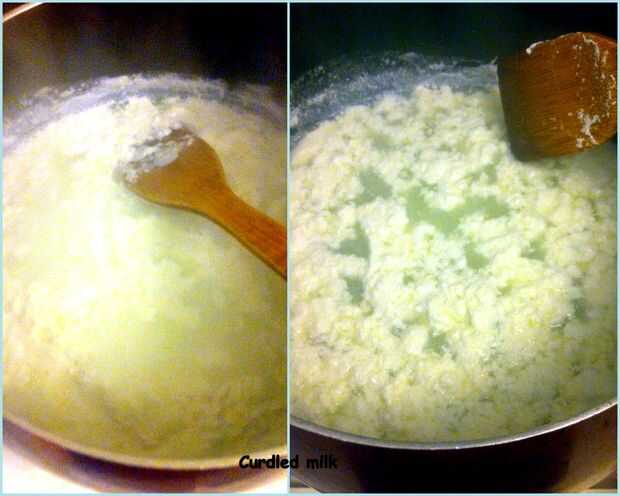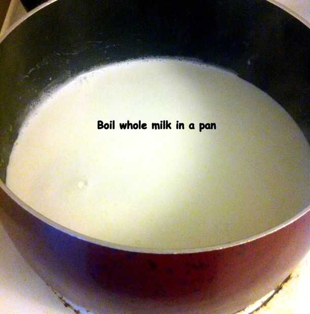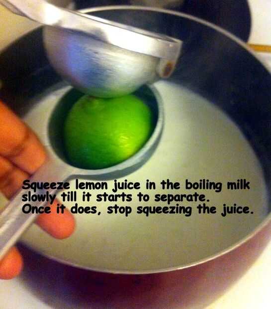 3. Cuando la leche comience a hervir, exprimir jugo de limón hasta que la leche empieza a separar.