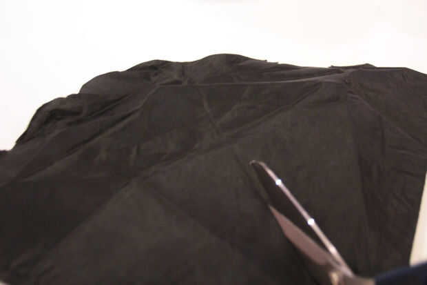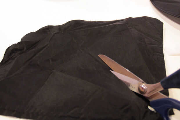 Encontrar algunos robusto negro/gris/marrón (cualquier color de gato eres) material.  He utilizado algunos de los materiales de espuma negra de la parte superior del sombrero de la bruja barato que encontré en mi tienda local de dólar.  Fieltro trabajos demasiado. Cortar el material en dos triángulos grandes.