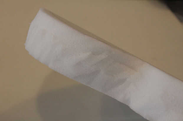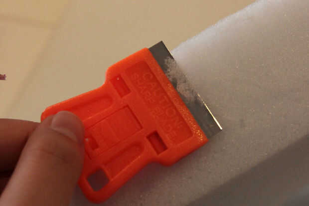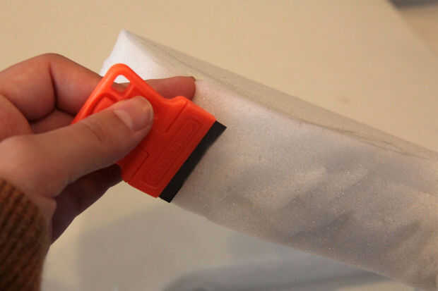 Usar la hoja para limpiar cualquier bordes dentados en su espuma, tenga cuidado de no cortar los dedos haciendo esto!