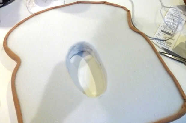 Corte un pequeño agujero oval en el centro de la rodaja.  Comience con un agujero que es demasiado pequeño para ser seguro.