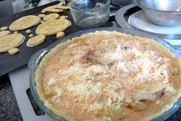 A continuación, vierta la mezcla de huevo y leche sobre todo.