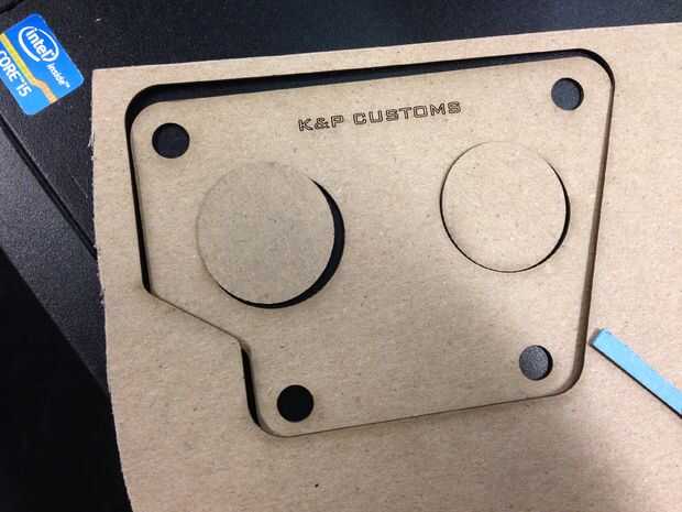 Cogí algunos cartón cubo de chatarra. Luego cambiar mis preferencias de impresión de material y espesor y hit grabado enviarlo a la cortadora láser. Después de colocar el material en la herramienta de corte, comprobar colocación estaba lista para ver mis resultados y preferencia.