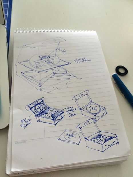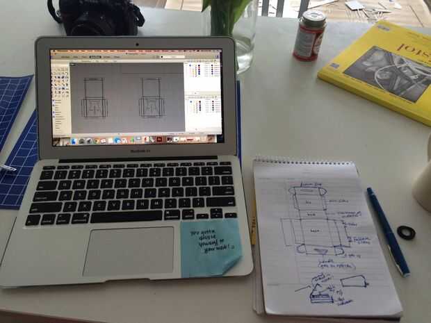 Investigar y dibujar. Echa un vistazo en línea cajas y decidir sobre el adecuado para su producto. Elegí una caja de tapa frontal. Una vez yo estaba contento con la forma, bosquejó varias versiones de dimensiones de la plantilla hacer la caja con papel y pluma normal. Luego había digitalizado el plano mediante CAD. Yo utiliza Rhino para esbozar la plantilla de la caja a escala. El cuadro que estoy haciendo es medida para mi producto (vista de producto aquí) y medidas de 19 "x 20" x 3,75" profundo. Ver la plantilla a continuación.