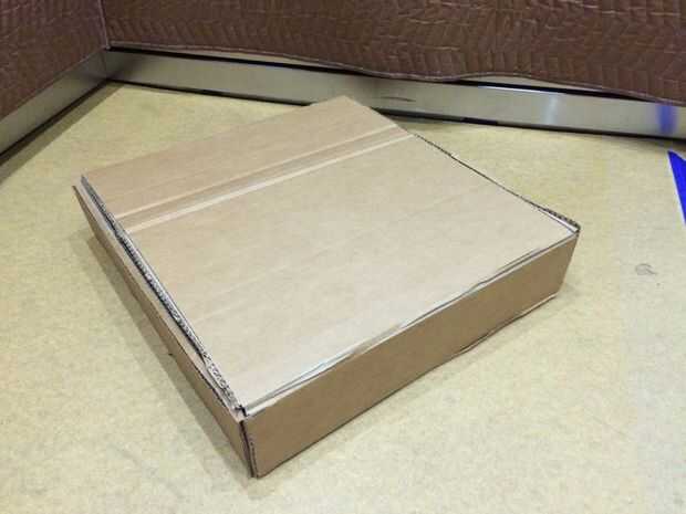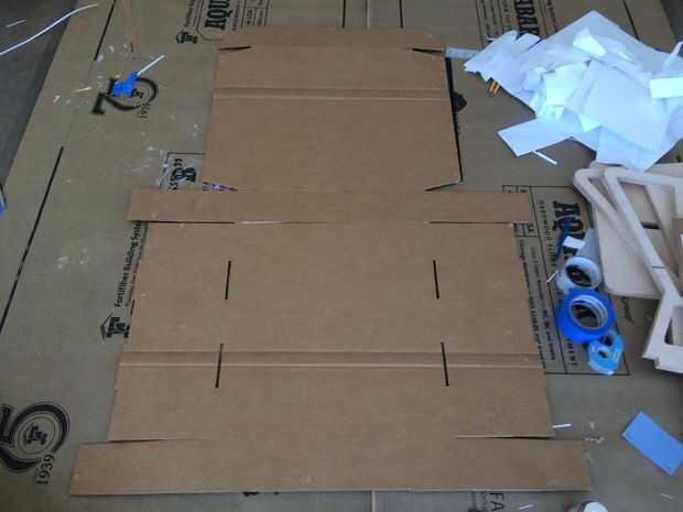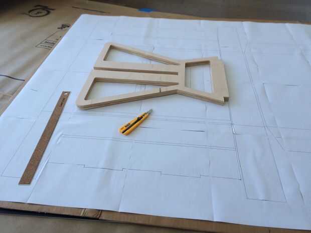 Imprimí el plan digital de la caja de escala utilizando una impresora estándar. Baldosas hojas tamaño carta de papel para crear la gran superficie de la plantilla. He pegado el papel hacia abajo utilizando el cemento de goma y corte mi primer prototipo áspero caja para probar. El cuadro de ajuste, por lo que el siguiente paso es refinar el paquete.
