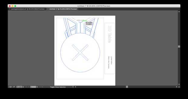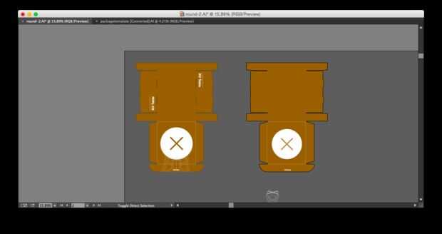 Después de diseñar los gráficos de Illustrator (archivo abajo), imprimí un modelo en pequeña escala de mis gráficos del paquete para ver el efecto. Ver el objeto físico es útil para ajustar ediciones menores en la ubicación de los gráficos en los lados y la parte superior. Una vez que estaba contento con el resultado, luego describí todas las líneas en Illustrator para preparar para cortar una plantilla de vinilo para serigrafía.