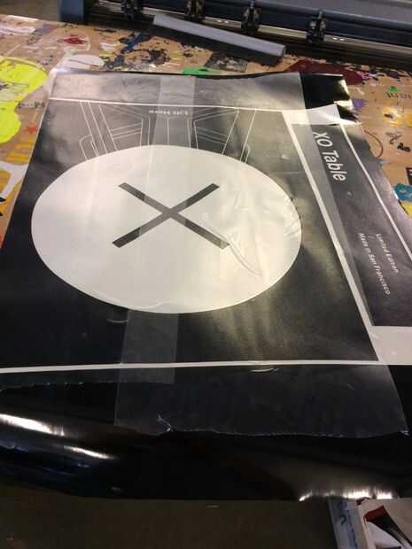 Con un vinylcutter, he creado una plantilla de imagen de espejo para la aplicación de la serigrafía. Luego pela los negativos de la plantilla y aplicada a una pantalla de seda pre-estirado de 20 "x 30".