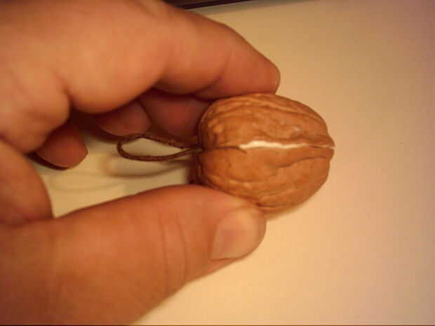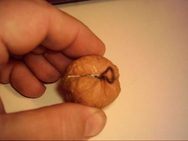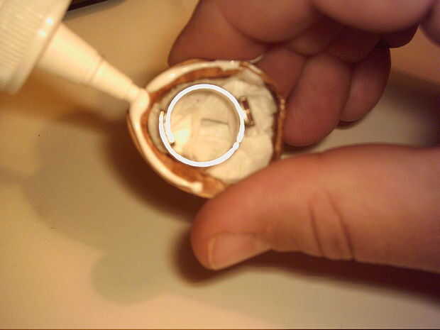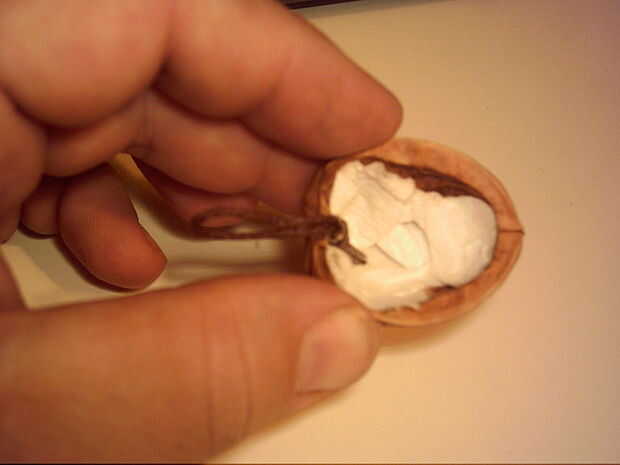 Esperamos que usted puede obtener las dos mitades con ninguna señal de que ha sido abierto. He dejado fuera la cadena en otras versiones y la cinta insertada o incluso sólo dejó llano, para deslizarse en una bolsa de otros frutos secos. Algo divertido de hacer si quieres sorprender a alguien, es dejarlo totalmente llano y meter esto en una lata de nueces mixtas y ya previamente sin cáscara. Entonces se puede decir "Hey mira, dejan un desliz a través." De allí que la otra persona lo de la cáscara y "Sorpresa". Me encantaría ver a alguien usar esto como una manera de proponer a alguien.