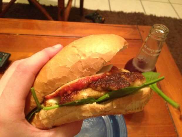 Esta es mi versión de un sándwich de pollo parmesano - no es tradicional pero es delicioso! La manera de que hacer el pollo en esta receta es buena para emparedados y las ofertas del pollo, por lo que en realidad es como dos recetas en una. ¡ HURRA!E