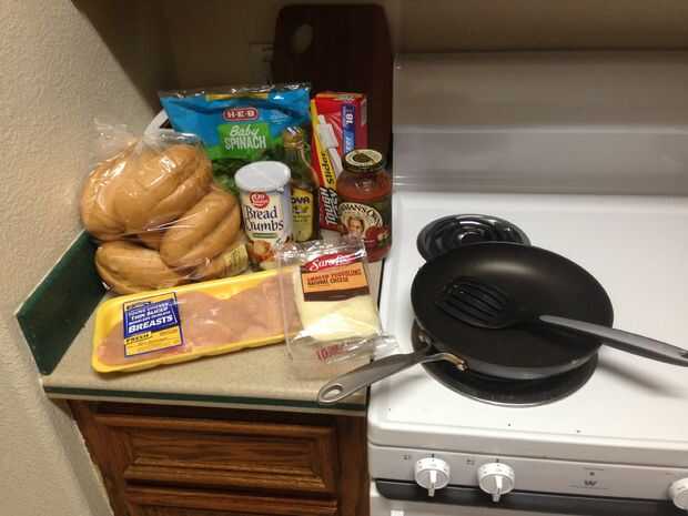 2. unas pechugas de pollo cortadas en rodajas (5,00 dólares)