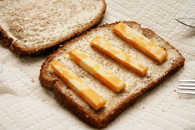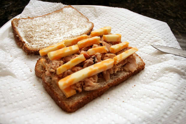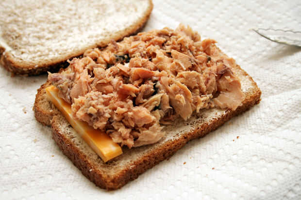 3. sacar de su salmón enlatado sobre el queso y pan rebanado