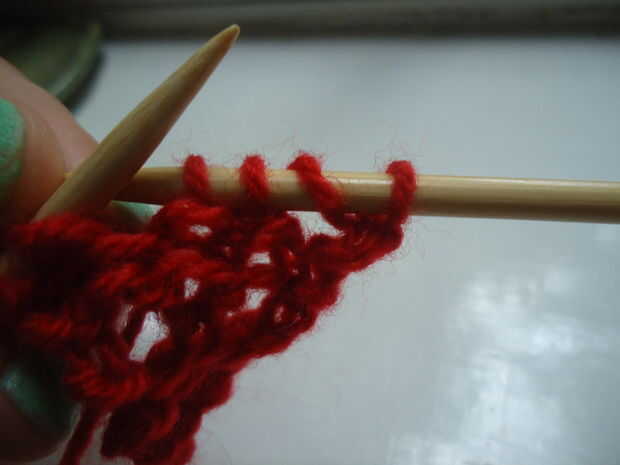 punto uno (k1), lazo yarn over la aguja (YO), k1