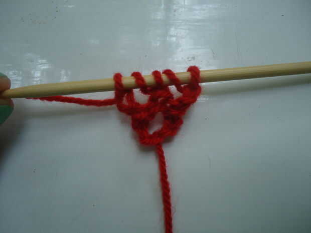 tejer todas tres puntadas, tratar el lazo yo como una puntada normal (k3)
