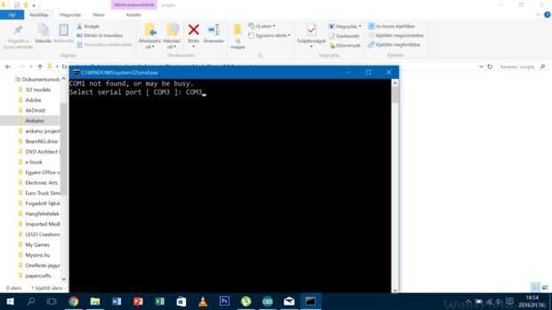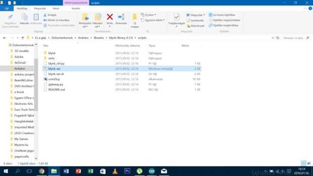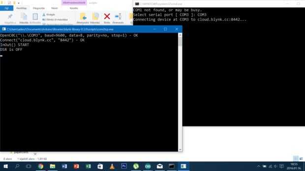 7. abrir el blynk-ser.bat: situado en la carpeta de username\Documents\Arduino\libraries\blynk-library-0.3.0\scripts de C:\Users\Your