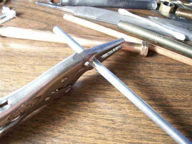 Ya que no planeaba usar a este en el campo (todavía) pero más bien pruebas de relaciones de compresión utilizado vice apretones como un tope de pistón ajustable y para el mango del pistón y una toalla para mantener el cilindro. Para uso del campo que se puede utilizadas piezas de madera con un agujero perforaron en ellos el tamaño del diámetro exterior del pistón y el diámetro exterior del cilindro y fíjelos con epoxi.