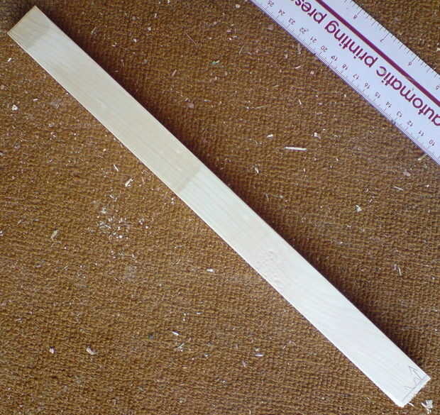 Medir las alturas de las líneas verticales dibujadas en el vértice, como se mencionó anteriormente. Serán ligeramente diferentes a su bosquejo porque necesita pulir las "esquinas". Utilice estas alturas para las anchuras de las costillas. las longitudes dependen de lo que usted quiere su anchura final juntas para ser. En mi caso 375mm debe ser el ancho total de su plantilla (+/-5mm). Solamente puede medir estas tras las piezas de perfil bilateral porque depende del grosor de la madera utilizada. De arena y alrededor de las costillas.