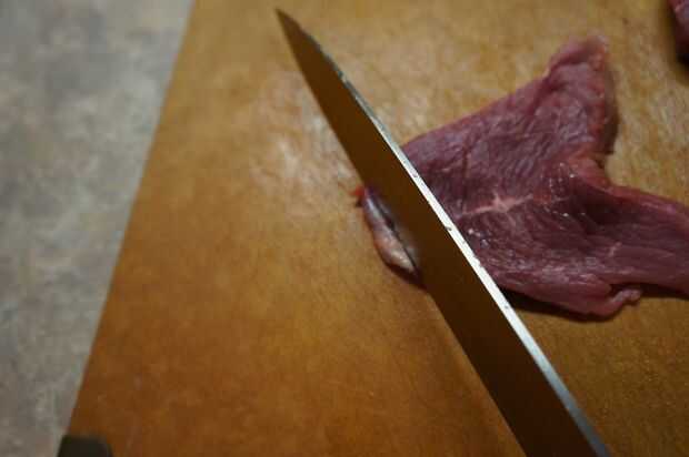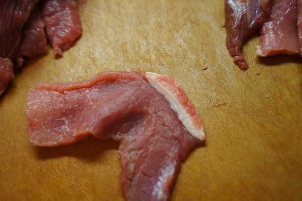 Ir a través de sus recién cortados rebanadas y recortar cualquier resto de grasa. Dentro de la razón. Ninguna cirugía microscópica necesaria. Particularmente cualquier trozos grandes en los extremos.