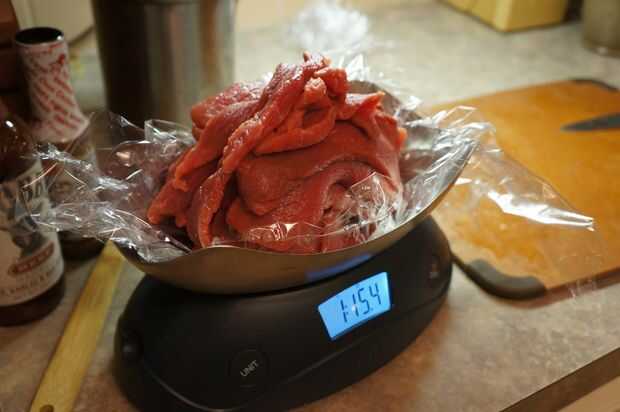 Si eres un nerd total como yo, una vez completado este paso se pesan sus rebanadas sabiamente cortadas y recortadas y compárela con el peso bruto de su corte de carne para calcular su rendimiento. Ahhh, datos! Casi tan bueno como desigual...
