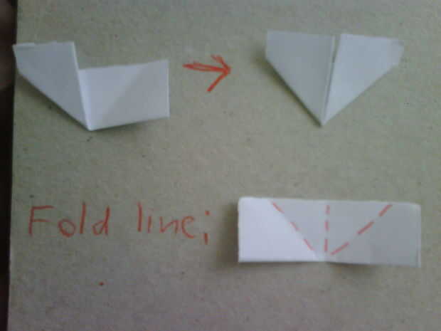 Tercero recuerda la línea de pliegue que hizo en el segundo paso... este es su momento para brillar. tomar un lado y doblar diagonalmente para conocer la línea de pliegue, luego doble en su lugar, la imagen correctamente explicar donde debe ocurrir el doblez.