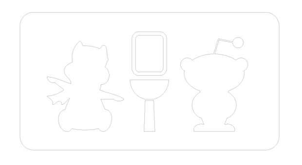 Utilizando la imagen como referencia, remontar el patrón de lavabo y espejo de la señal original y la mascota de empresas, luego una versión de vector de Reddit alien y todos reunidos en un rectángulo de 15 "x 8" redondeada.