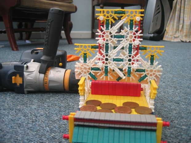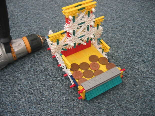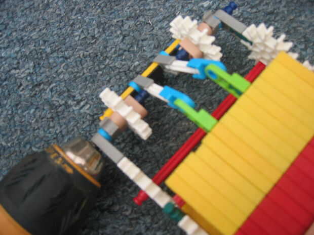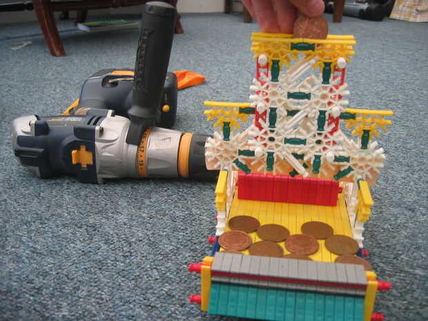 He tenido algunas solicitudes para crear una ible para este empujador de la moneda. Estoy usando un taladro como un motor para encender el árbol porque no tengo un motor k'nex. Estoy seguro de que fácilmente puede modificarlo para que pueda utilizar