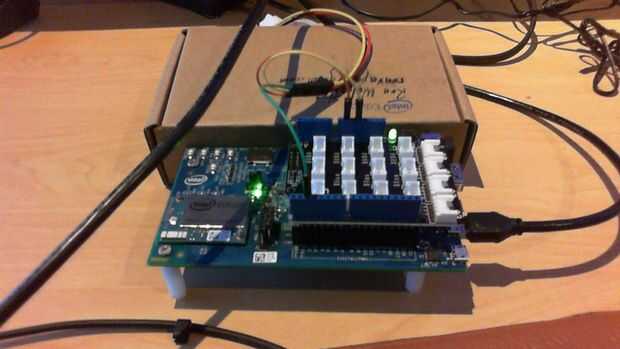 Entrenador de instrumento colocando el módulo Intel de Edison a la placa Arduino de Breakout. A continuación os adjunto el el escudo de Grove a romper hacia fuera la placa de Arduino.
