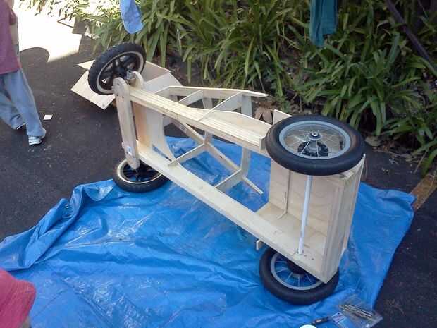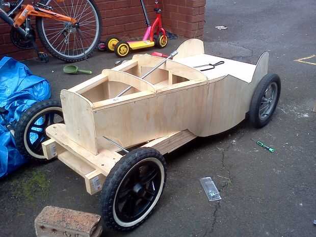 Go-kart, carro, carretilla de rueda... cualquier cosa con ruedas neumáticas se puede fácilmente hacer en neumáticos run-flat o plana no. Me estaba haciendo un empuje el coche para mis hijos y uno de mis neumáticos tenía un vástago de la válvula roto.