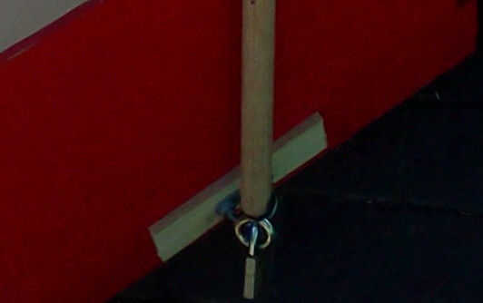 Tomé un palo de escoba un atornillado un perno de ojo en el extremo de él. En la parte trasera del vehículo había conectado a U-bolt.I entonces tiene un candado y bloqueado la armella y el perno en u para crear un fuerte pero Junta flexible con un mango largo que yo puedo.