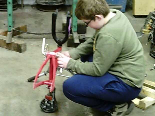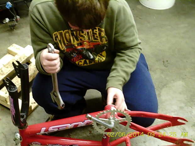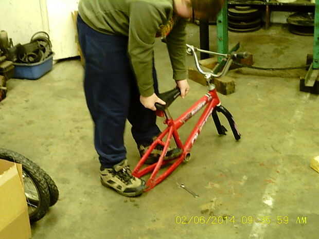 Quitar las ruedas, cadena, pedales, manivela, asiento y el manillar. Mientras que las ruedas estaban desconectados, que los cojinetes engrasados y quitar las agallas para el freno de contrapedal.