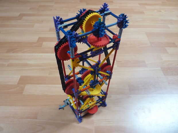 Hola knexers!Este es el último de los 4 ascensores nuevos todos por primera vez en mi máquina de la bola de KVG paradoja.Es un ascensor pequeño que fue utilizado para levantar las bolas de la planta baja de blanco al piso blanco alto, pero se puede u