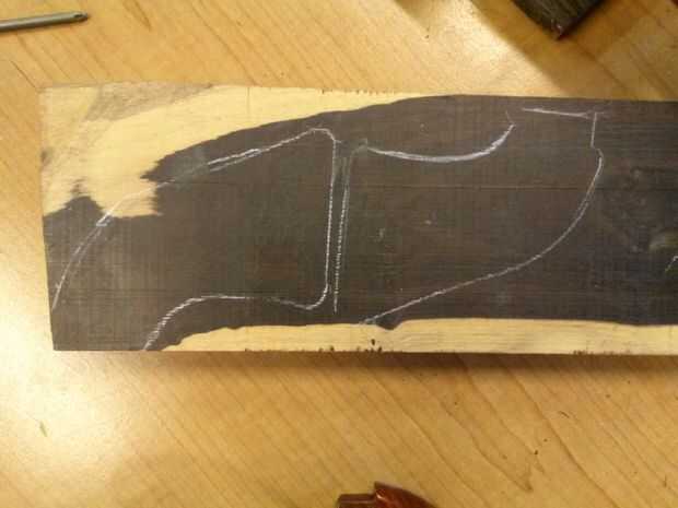 Tomar las manijas originales pistola y remontar a la madera. Luego recorto en la sierra.
