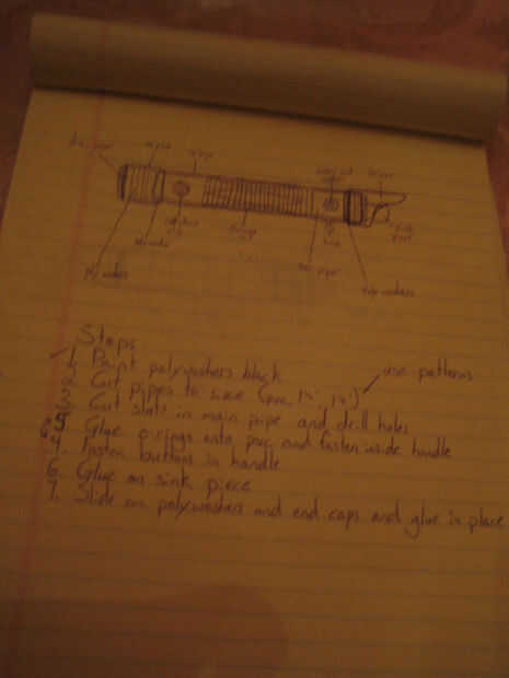 Fui con un diseño bastante básico. Basado en lo que quieres que tenga de peinar los pasillos de la ferretería en busca de algo que puede utilizar para convertir su visión en una realidad. Todo que realmente quería era una zona de mango más delgada con un área de emisor con arcos y la hoja más gruesa. También quería a algún tipo de diseño de la manija para que sea menos normal, algún tipo de forma para el emisor de la hoja y varios botones para que se vea como realmente hizo algo.
