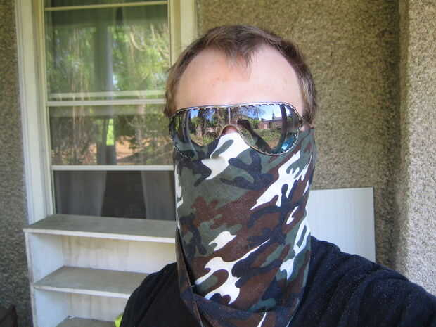 Super equipo de seguridad profesional (bien usé un pañuelo y un par de gafas de sol)