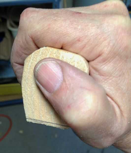 Cuando esté satisfecho con la forma de un bloque de madera, marcas rugosas con un cinturón de arena o lijadora de tambor.