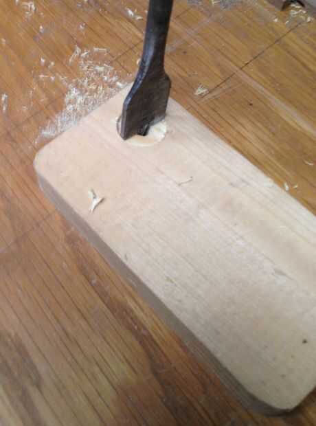 Una esquina debe extraerse la pieza plana por lo que la imagen puede llegar a la lente de la cámara. Taladré un agujero de 3/4 de pulgada para hacer un buen radio. Con el fin de evitar saltar hacia fuera, perforé la parte del agujero de la forma a través de un lado. Tan pronto como la punta de la broca a través de la madera, he terminado desde el otro lado. Entonces aserradas en los bordes. Ver el siguiente paso.
