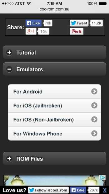 Para llegar a la descarga, abrir safari e ir a coolrom.com. Coolrom.com es un sitio seguro y libre que el emulador y los juegos se descargarán de. Ahora en la página de inicio de coolrom, debe ver una pestaña que dice emuladores, haga clic en él. Ahora otro set de pestañas aparecerá, haga clic en uno que dice no jailbreak. Después de esto, se le llevará a una página que tiene un montón de descargas emulador diferente, el único que queremos es GBA4ios. Haga clic en la ficha de GBA4ios y presione instalar.