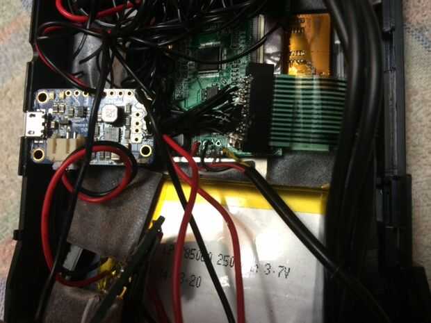 3.) prueba. Trate de conectar la batería a la PowerBoost y encender el botón de encendido/apagado. La pantalla deberá encenderse aunque no haya ninguna señal real. Si no, trate de cambiar en el PI, asegurándose de que el conector RCA es en el puerto de salida de vídeo compuesto.