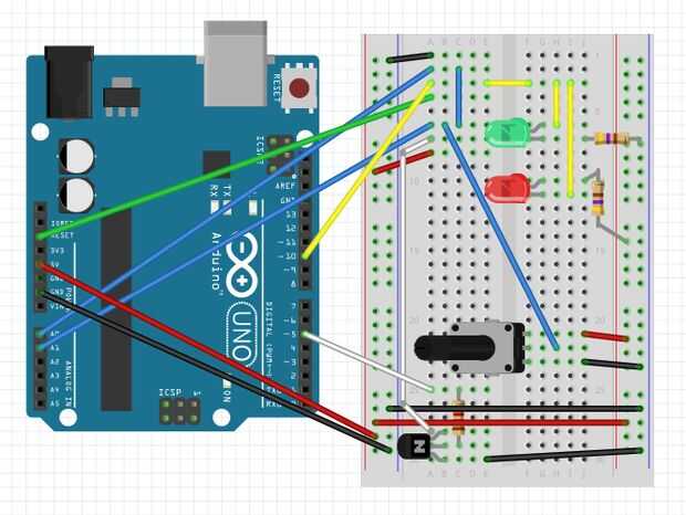 Todo lo necesario para construir este circuito es un 10 K potenciómetro puente los cables y.