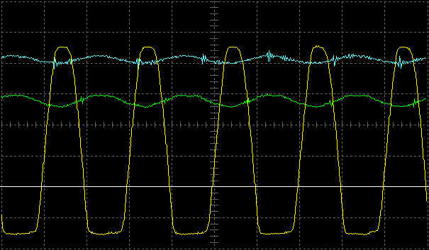 Línea amarilla es la señal inducida en la bobina de a (GP5) procesador.