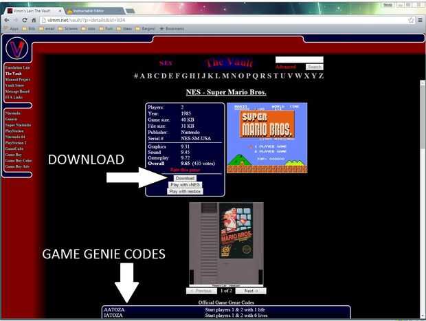 Usted notará en la sección de descargas que usted verá una lista de códigos de juego Genie para ese juego particular. Este es un divertido recurso puesto que han permitido que algunos emuladores para esta funcionalidad en el software.