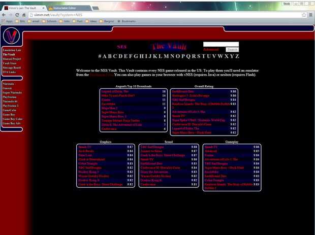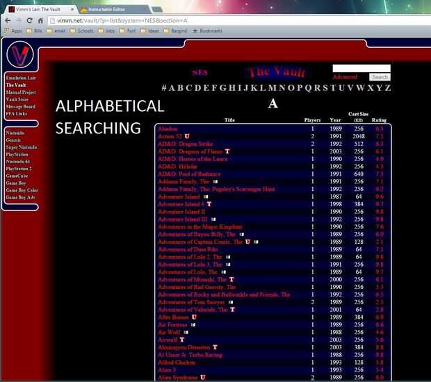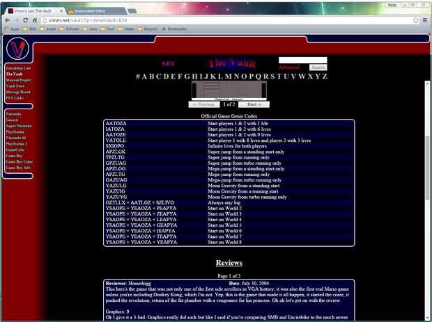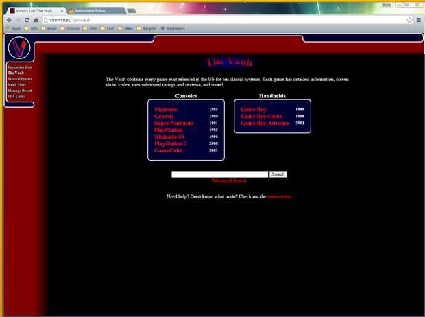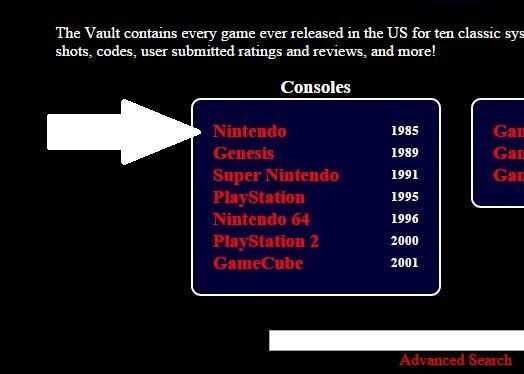 "La bóveda contiene cada juego siempre lanzado en los Estados Unidos de diez sistemas clásicos. Cada juego cuenta con detallada información, capturas de pantalla, códigos, enviados por el usuario calificaciones y comentarios y mucho más!