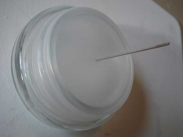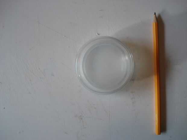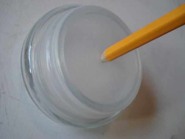 Tomar la tapa de cristal y pinchar la parte de plástico de la tapa con la aguja. Hay un pequeño agujero en la tapa ahora. Agrandar el agujero con un lápiz.