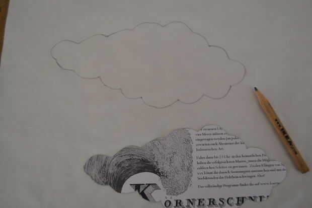 cortar las nubes fuera de la tela blanca (sin margen de costura necesitada).