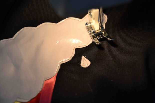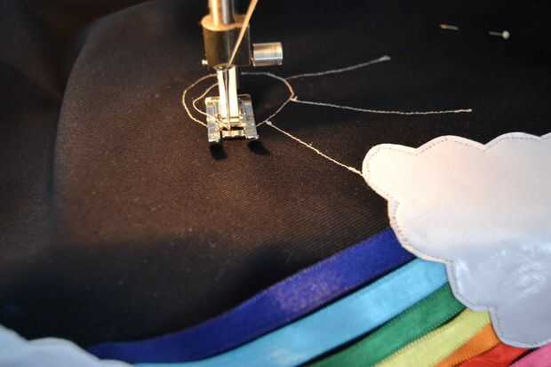 no tienes que usar hilo de bordar especial ni equipo, solo el hilo blanco y su normal estrecha puntada de la máquina de coser va a hacer el truco.