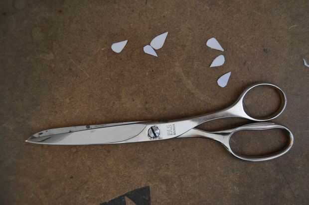 después de corta algunas gotas poco fuera de la tela blanca - el sol no necesita una plantilla para ello.