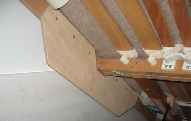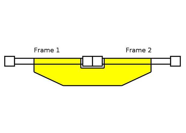 En primer lugar hice dos piezas en forma de trapecio (véase la ilustración) de madera contrachapada gruesa para conectar los dos cuadros, que impide su flexión cuando sólo uno de los dos es levantado.