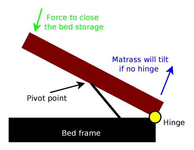 Para impedir que la cama se inclina cuando el matrass se empuja hacia abajo otra vez, hay que agregar las bisagras de algún tipo.