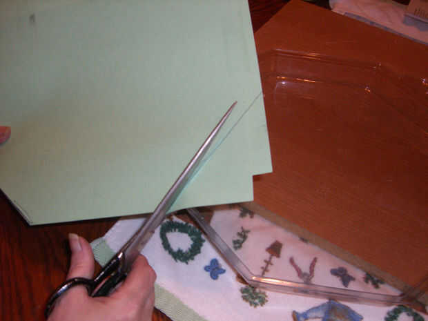 Cortar la pieza y colóquela en el molde. Si no pone plana recortar cualquier área distancia necesarios hacer el patrón de ajuste del molde.
