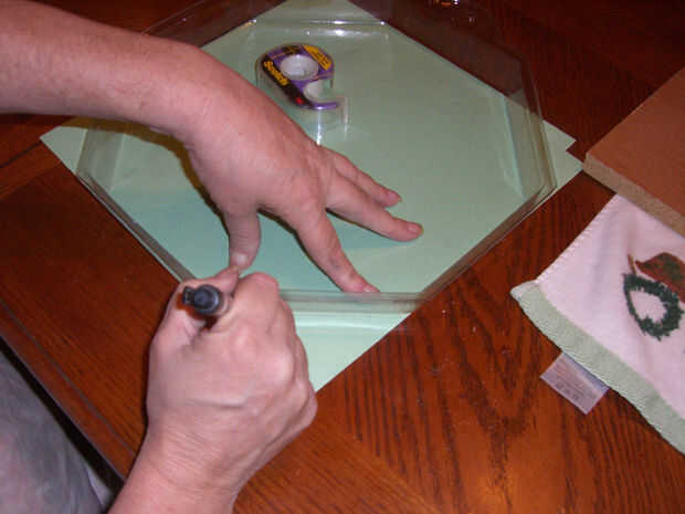 Aquí trazado una porción interior de 1 3/4 pulgadas en donde mis principales diseño área sería, usando el área externo para la colocación del resplandor en las oscuridad las estrellas. A continuación, decidió lo que quería poner en el área de diseño principal y dibujó las líneas guía y colocación para mis letras.